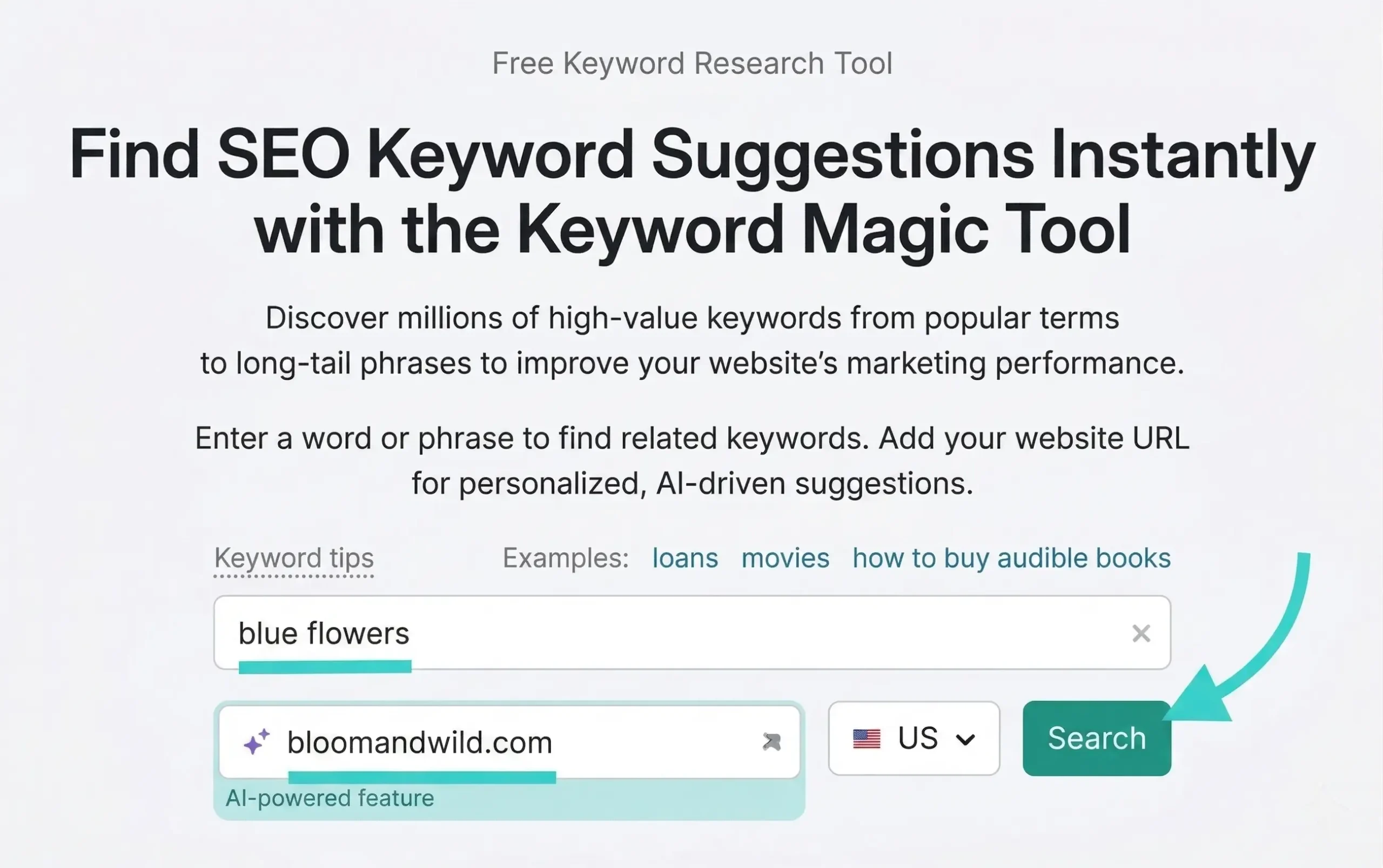 To identify better keyword opportunities, you can use tools like Semrush’s Keyword Magic Tool.